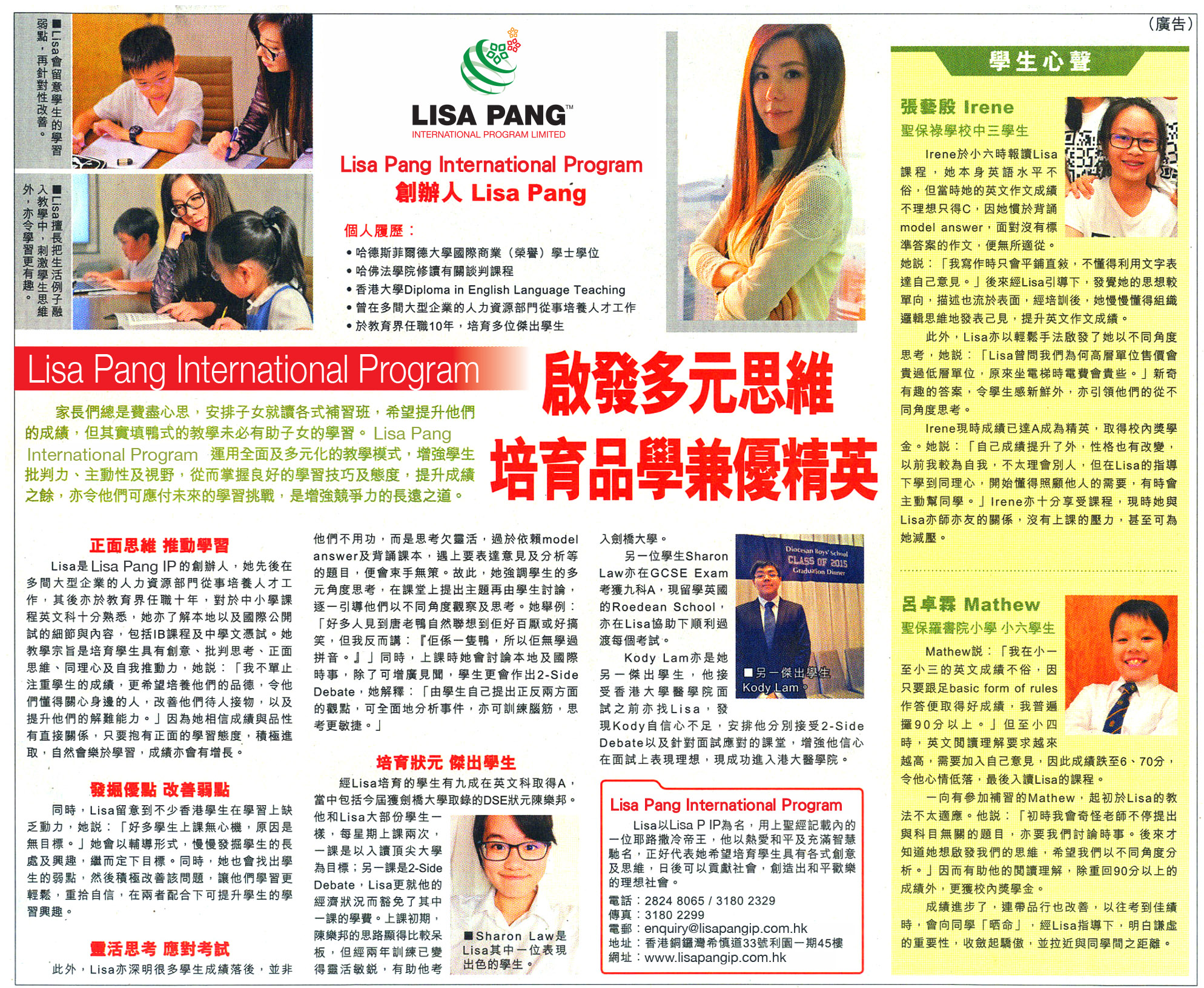 Lisa Pang International Program’s unique approach has attracted the attention of the press.
